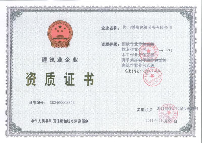 ??跇淙ㄖ趧?wù)有限公司成立于2011年,公司位于海口,其前身是一家專業(yè)建筑施工隊,自2004年即開始在海南從事建筑勞務(wù)施工。自成立至今,公司已經(jīng)擁有一支科學(xué)管理、質(zhì)量過硬、能打硬仗,搶工期的專業(yè)隊伍。能獨立承擔大中型工業(yè)與民用建筑 、室內(nèi)外裝修、各類機電設(shè)備安裝工程。代表工程有海口濱海華庭、三亞時代海岸T01/02/04/05棟高層、合肥東?;▓@二期、陵水富力灣B區(qū)高層、三亞金中海(酒店)、瓊海大印經(jīng)典花園、??诃h(huán)球海景大酒店(四星級酒店,在建中)、陵水珍珠大廈(五星酒店)、海口萬達廣場、美蘭機場二期。